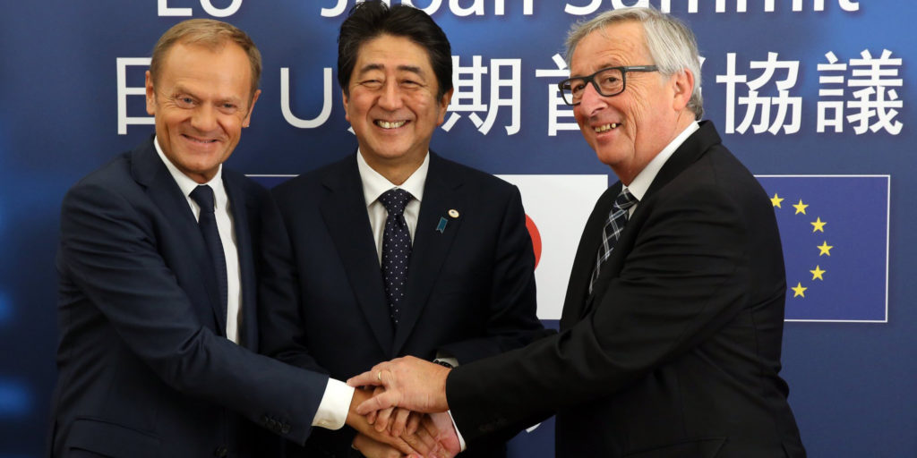 Tokyo. Tre giorni fa, Jean Claude Juncker, presidente della Commissione europea, come rappresentante della Unione europea, ha firmato a Tokyo lo storico accordo commerciale con il Giappone (JEFTA Japon-EU Free Trade Agreement) che riduce oltre il 90% dei dazi nel commercio reciproco.