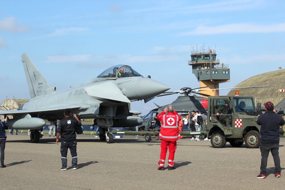 Dopo l’atterraggio anche un Eurofighter è stato preso d’assalto dagli appassionati, mentre l’aeroporto veniva sorvolato da Tornado, F-35 e alcuni velivoli della Pattuglia Legend.