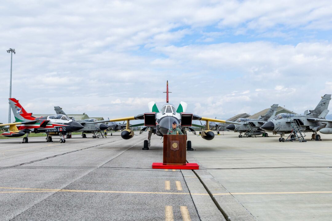 L’evento, aperto al pubblico accreditato e agli appassionati e fotografi, è stata l’occasione per presentare ufficialmente un velivolo Tornado “Special Color” realizzato, per raccontare attraverso una livrea dedicata, un viaggio ideale nella storia operativa compiuta dall’aereo, durante il suo impiego cinquantenne, le operazioni che lo hanno visto protagonista e le diverse fasi di evoluzione capacitiva impiegate nei diversi contesti operativi d’impiego, rappresentati dalle varie livree che hanno caratterizzato il velivolo nella sua vita operativa.