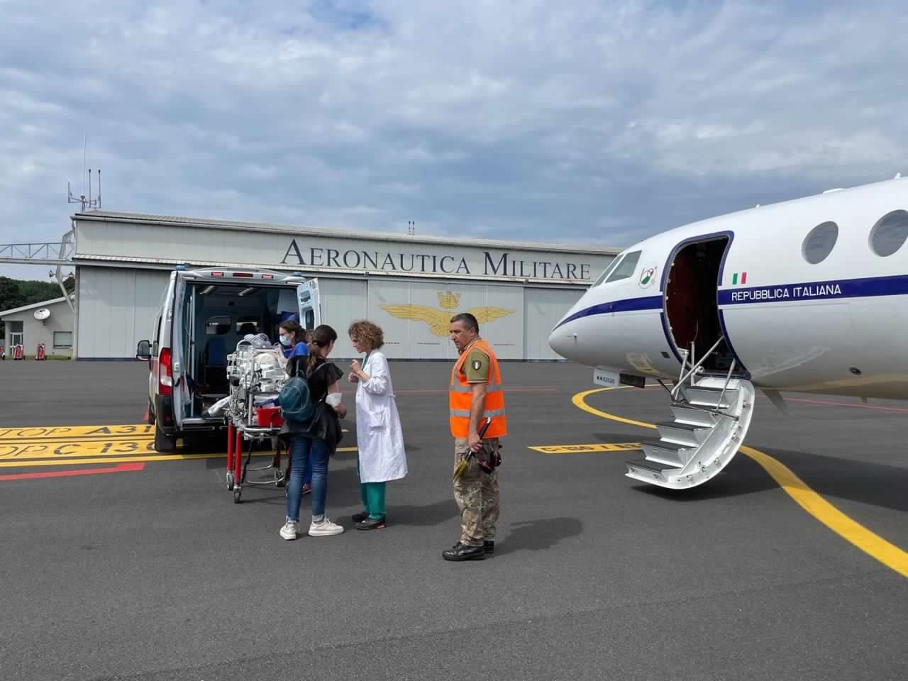 La missione di volo è stata effettuata da un equipaggio dell’Aeronautica Militare in pronto intervento presso l’aeroporto militare di Ciampino.