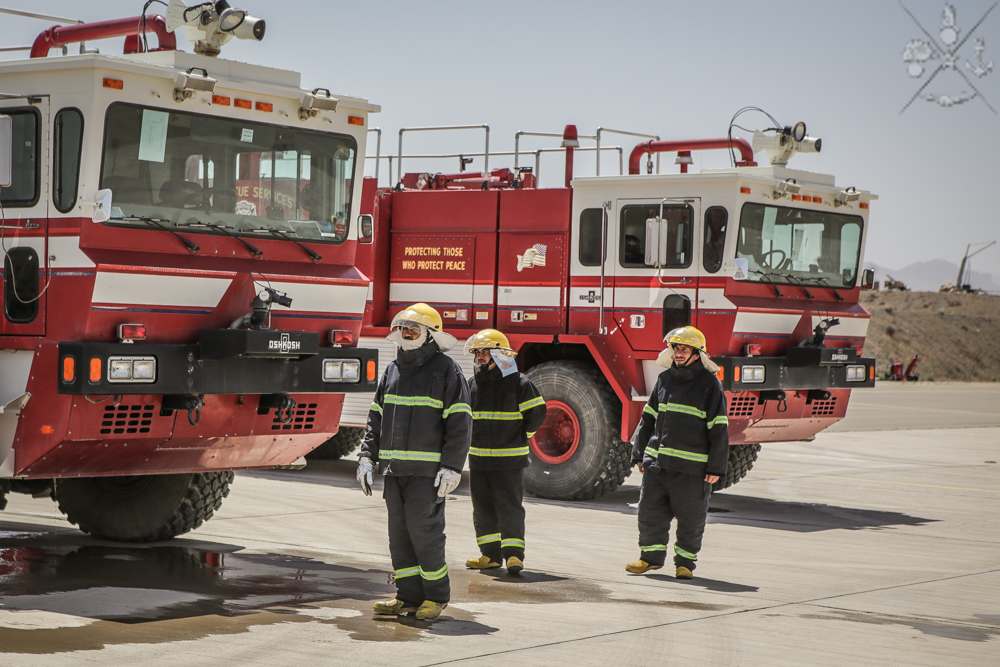 Nella giornata conclusiva del workshop, il personale del servizio antincendi della Air Force Afgana di Herat ha dato dimostrazione delle proprie capacità, impiegando i mezzi antincendio “Oshkosh” al fine di testarne il livello di efficienza tecnica e di valutare il livello di training e preparazione per la condotta dei servizi aeroportuali.