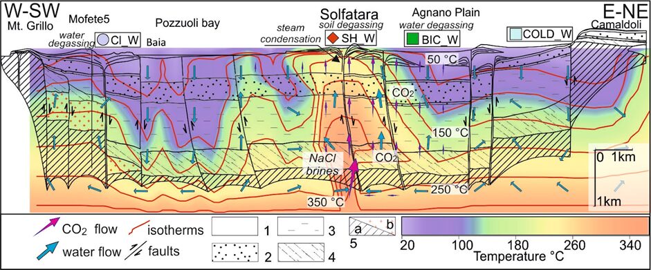 I processi geochimici identificati sono strettamente connessi, ma ognuno domina in regioni specifiche del sistema idrotermale, causando quindi, la grande variabilità nella composizione delle acque sotterranee all’interno della caldera.
