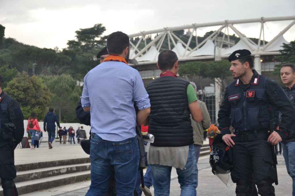 In occasione di partite di calcio, l’afflusso ed il deflusso degli spettatori son momenti molto delicati. I tifosi ospiti escono dall’impianto dopo che quelli di casa sono andati via. Vengono fatti risalire sugli autobus e scortati alle Stazioni Termini, Tiburtina, negli aeroporti se devono prendere un volo charter. O ancora nello stesso Piazzale delle Canestre.