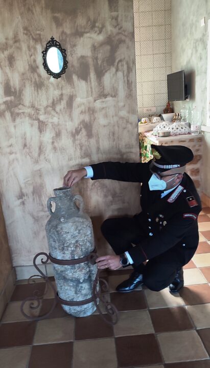 Nettuno (Roma). I Carabinieri della Stazione di Nettuno (Roma) su delega della Procura della Repubblica di Velletri (Roma) hanno eseguito un decreto di perquisizione presso il domicilio di una persona di Nettuno, dove sono state trovate tre anfore da trasporto con concrezioni marine e una colonna in pietra calcarea con base e capitello.