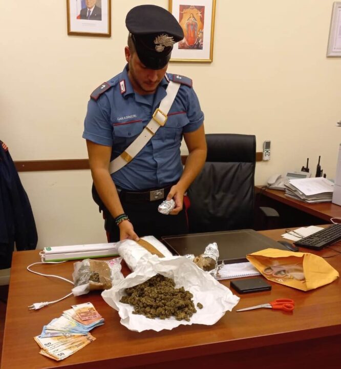 La successiva perquisizione domiciliare ha permesso ai Carabinieri di rinvenire e sequestrare ulteriori 41 grammi della stessa droga, diciannove cartucce da fucile calibro 12, illegalmente detenute, e 635 euro in contanti, ritenuti provento di attività illecita.