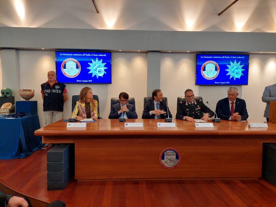 – Cooperazione Internazionale tra Forze di Polizia: il 5 giugno 2023, a Roma nella sede del Reparto Operativo dei Carabinieri Tutela Patrimonio Culturale, Caserma “La Marmora”, alla presenza dell’Ambasciatore della Repubblica Federale di Germania in Italia, Viktor Elbling, sono stati restituiti all’Italia, rappresentata dal Comandante dei Carabinieri Tutela Patrimonio Culturale, Generale di Brigata Vincenzo Molinese, 14 beni culturali di notevole valore economico e culturale, provento di diverse attività di reato.