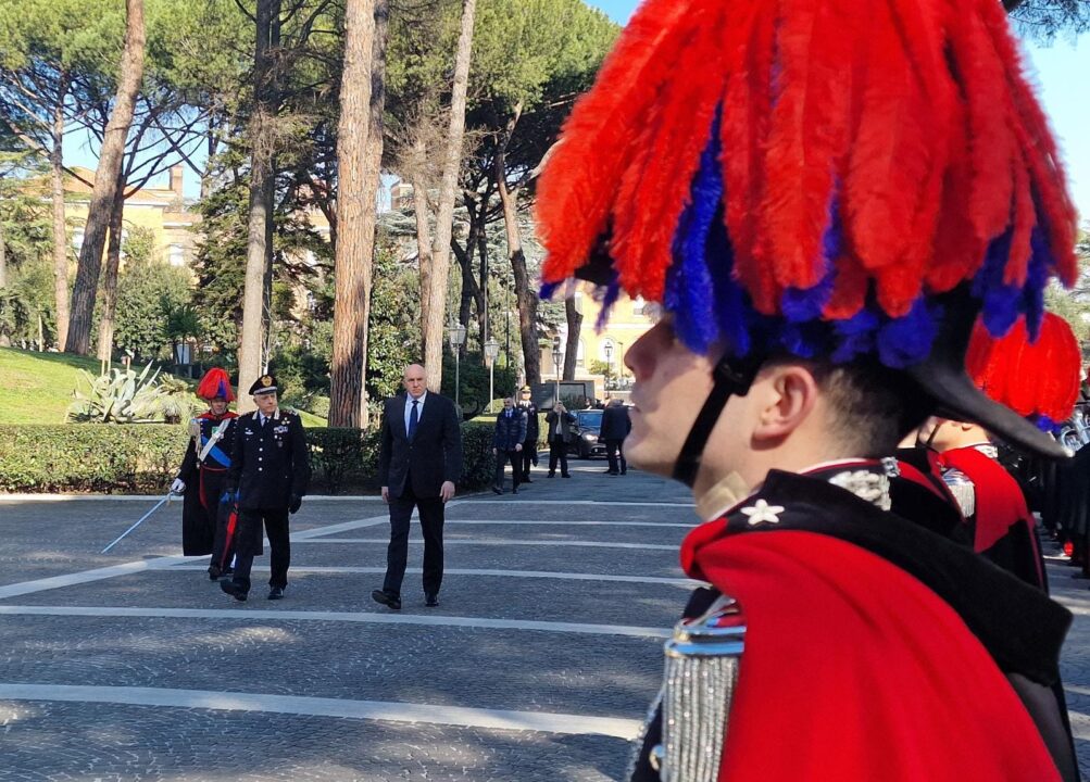 In chiusura di cerimonia, è salito sul palco il Sottosegretario di Stato alla Presidenza del Consiglio dei Ministri Alfredo Mantovano, il quale, dopo aver ringraziato le Autorità e gli ospiti intervenuti, ha dato lettura di un messaggio del Presidente del Consiglio dei Ministri, Giorgia Meloni, che ha ricordato quanto importante sia il ruolo dell’Arma dei Carabinieri per tutti gli Italiani.