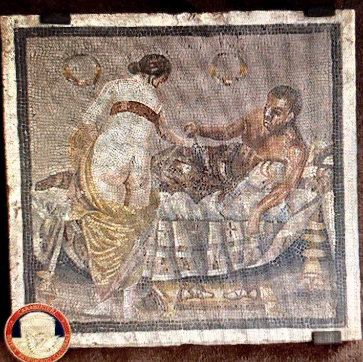POMPEI (NAPOLI). I carabinieri restituiscono al Parco archeologico di Pompei un prezioso mosaico proveniente dalla Germania. Oggi, al Parco archeologico di Pompei (NA), il comandante dei carabinieri per la Tutela del patrimonio culturale, generale di divisione Francesco Gargaro, ha restituito al direttore generale del Parco archeologico di Pompei, Gabriel Zuchtriegel, un pannello a mosaico su lastra di travertino, databile tra la metà dell’ultimo secolo a.C. e il I secolo d.C. a tema erotico di epoca romana, proveniente da quell’area e rimpatriato dalla Germania a mezzo di spedizione diplomatica predisposta dal Consolato Generale d’Italia a Stoccarda (Germania).