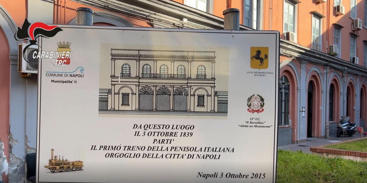 NAPOLI. Questa mattina, i Carabinieri del Nucleo Tutela Patrimonio Culturale di Napoli, su delega della Procura della Repubblica di Napoli, gruppo intersezionale per la tutela penale dei beni culturali, hanno posto in esecuzione il decreto di sequestro preventivo dell’antica stazione ferroviaria di Napoli denominata Bayard, luogo di partenza della prima ferrovia d’Italia, la Napoli – Portici inaugurata nel 1834.