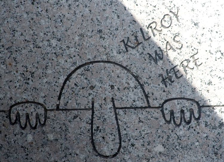 Per alcuni anni, durante e dopo la Seconda Guerra Mondiale, è stato onnipresente: uno scarabocchio di un uomo dal naso grosso che scruta un muro, accompagnato dalla scritta “Kilroy was here ”.