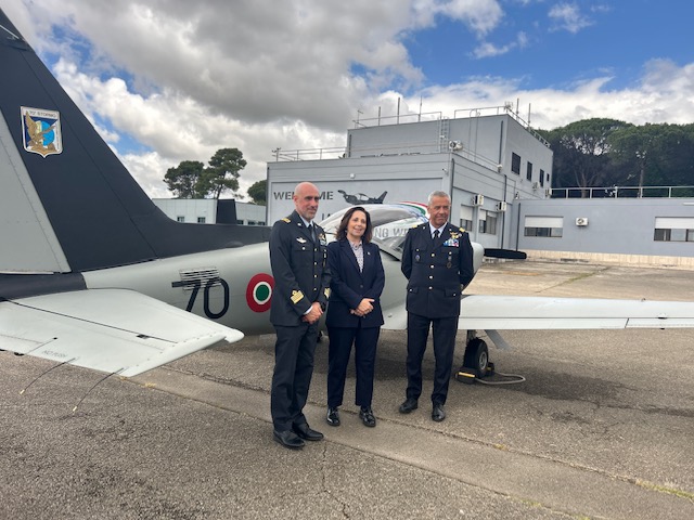 LATINA. Il sottosegretario di Stato alla Difesa Isabella Rauti, ha visitato a Latina il 70° Stormo, Scuola di Volo dell’Aeronautica Militare.