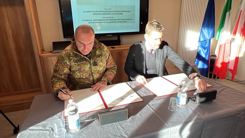 CORVARA (BOLZANO). La base logistica addestrativa “Tempesti” di Corvara ha ospitato oggi due eventi che evidenziano la sinergia di intenti tra il Ministero della Difesa, l’Agenzia del Demanio e la Provincia Autonoma di Bolzano: la cerimonia di inaugurazione delle nuove palazzine comando e polifunzionale della base di Corvara – ristrutturate a cura della Provincia – e la sottoscrizione di un accordo tecnico che consentirà alla Provincia stessa di avere una porzione di area militare dell’aeroporto militare di San Giacomo di Bolzano, per la realizzazione della nuova viabilità aeroportuale a servizio della nuova stazione ferroviaria dell’aeroporto.