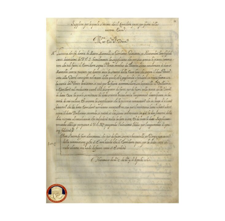 Per la Soprintendenza archivistica e bibliografica della Toscana e l’Archivio di Stato di Firenze, la collaborazione con l’Archivio di Stato di Firenze “è stata l’occasione per mettere alla prova un metodo di indagine consolidato, come la consegna del documento dell’archivio Mannelli Galilei Riccardi dimostra. L’esame puntuale dei caratteri estrinseci del pezzo, insieme alla ricostruzione della tradizione dell’archivio di origine condotta in stretta sinergia, restituiscono ora la fisionomia di un complesso archivistico servito da un inventario in cui non erano ravvisabili lacune. Il ritorno al fondo di origine del registro recuperato dal Nucleo Tutela dei Carabinieri stimolerà anche nuove riflessioni sul contenuto dell’intero archivio, a iniziare dalla versione su supporto membranaceo in esso contenuto della supplica con la quale ebbe origine la perimetrazione della torre dei Mannelli per costruire il Corridoio Vasariano. L’attuale cerimonia inaugura quindi un nuovo filone di studi su un brano importante di storia della città e sarà l’inizio di un nuovo percorso di trasmissione della sua memoria”.