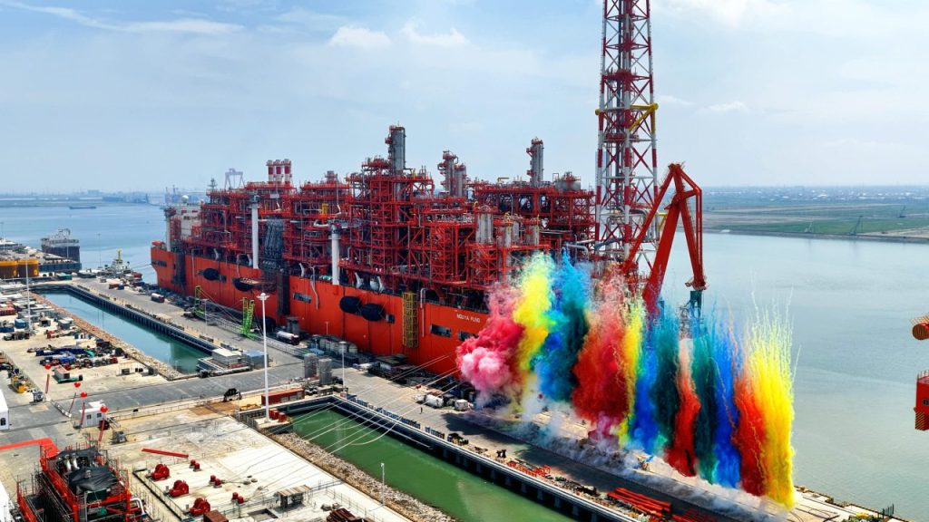 L’unità Nguya, lunga 376 metri e larga 60, sarà ancorata a una profondità di 35 metri e impiegata per la produzione di gas naturale liquefatto. Progettata per avere un’impronta carbonica ridotta grazie a tecnologie avanzate, rappresenta un’eccellenza nel settore.