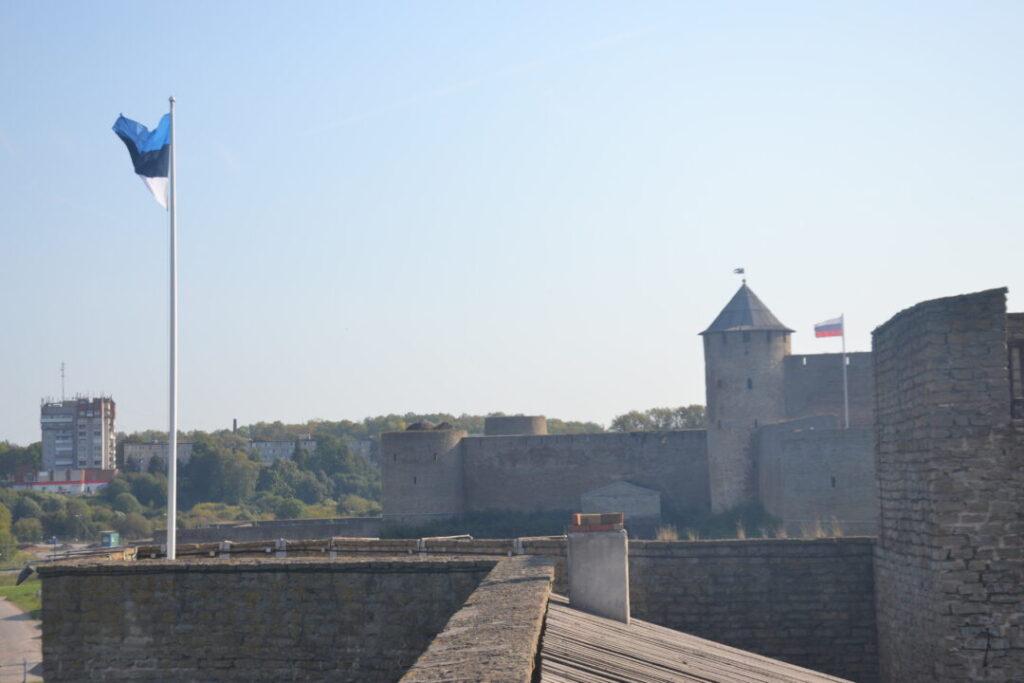 I due castelli, uno in terra estone e un altro in terra russa si guardano distanti, le rispettive bandiere svettano sulle torri.