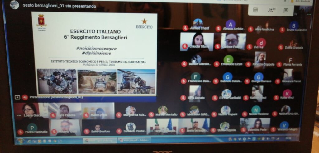 Militari specializzati Infoteam della caserma “Giannettino”, sede dell’unità trapanese, hanno incontrato virtualmente studenti e insegnanti dell’Istituto Tecnico Economico e per il Turismo “G. Garibaldi” di Marsala, attraverso le piattaforme informatiche per la didattica a distanza utilizzate dal Ministero dell’Istruzione, durante questo particolare periodo.