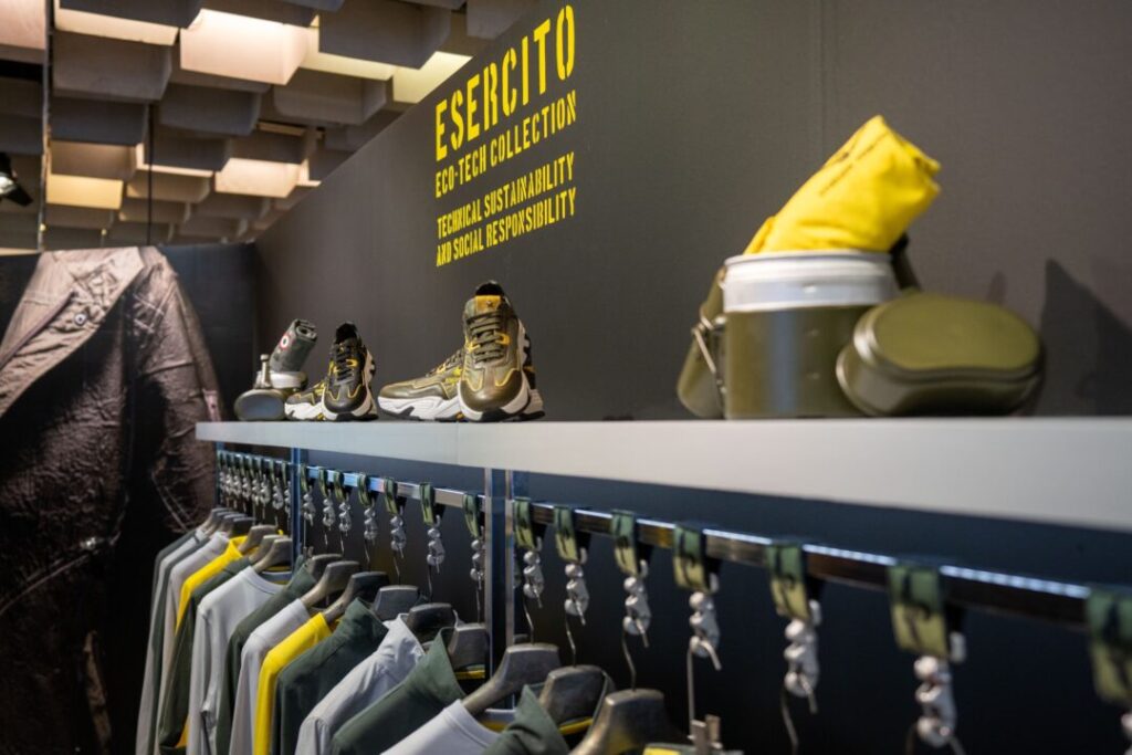“Esercito Sportswear” è il marchio commerciale dell’Esercito Italiano per la produzione e la distribuzione di capi di abbigliamento e accessori, prodotti da Officina Italia S.r.l., su licenza esclusiva concessa da Difesa Servizi S.p.A., società in house del Ministero della Difesa.