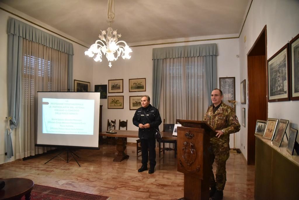 Salerno. Incontro formativo, ieri a Salerno, nella sede del Reggimento “Cavalleggeri Guide” (19°), tra i responsabili della Protezione Civile del Comune e il personale del Reggimento.