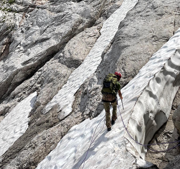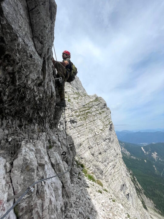 Dopo un lungo avvicinamento, è stata risalita la “Via della vita”, attrezzata dagli Alpini negli anni Venti del Novecento per scopi difensivi di pattugliamento del confine.