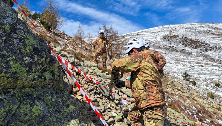 L’impiego di apparati di ricerca di ultima generazione ha permesso di rinvenire, con elevata precisione, frammenti metallici parte di munizionamento a diversi metri di profondità in un’area superiore ai 14 mila metri quadrati, e le macchine operatrici del genio, quali escavatori e pale caricatrici, sono state utilizzate per il livellamento di oltre cinque mila metri lineari di itinerario sterrato in quota.