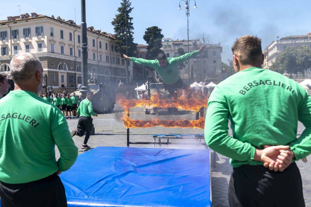 Inoltre, dallo scorso 29 aprile ad oggi, è stato allestito in Piazza del Popolo il “Villaggio Esercito”, un’area in cui i cittadini hanno potuto avvicinarsi al mondo con le “stellette” cimentandosi in attività quali il percorso di military fitness, l’arrampicata su parete di roccia artificiale, il simulatore di biathlon, una stazione di addestramento virtuale e altri sistemi di simulazione di tiro, di volo e di guida, tutto al ritmo della musica di Radio Esercito.