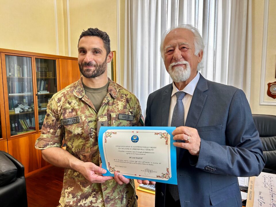 Il Tenente Generale Mariantoni ha sentitamente ringraziato i rappresentanti del Corso intervenuti, sottolineando come l’Opera Nazionale assista, attualmente, circa 500 orfani di Ufficiali, Sottufficiali, Graduati nonché dei militari di truppa, a ciascuno dei quali eroga sussidi annuali per la formazione scolastica e per particolari necessità di carattere economico-familiare.