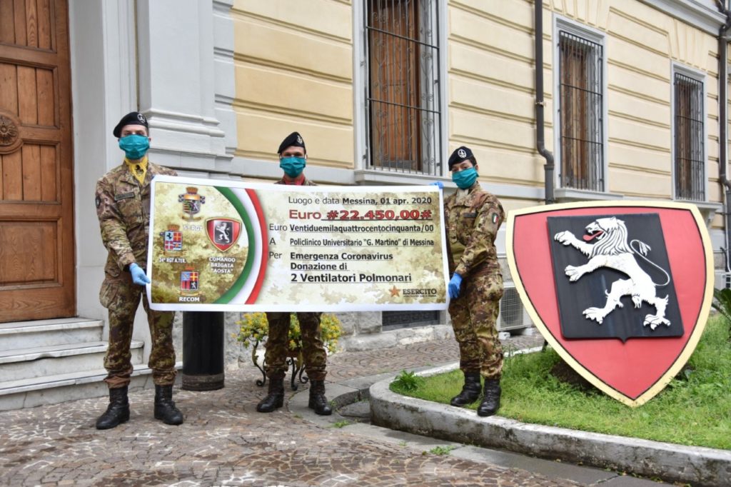 Messina. Il personale della Brigata “Aosta” di Messina ha voluto dimostrare la vicinanza alla città devolvendo fondi da destinare all’Azienda Ospedaliera Policlinico Universitario “G. Martino”, che serviranno per l’acquisto immediato di due respiratori destinati alla terapia intensiva per l’emergenza Covid 19.