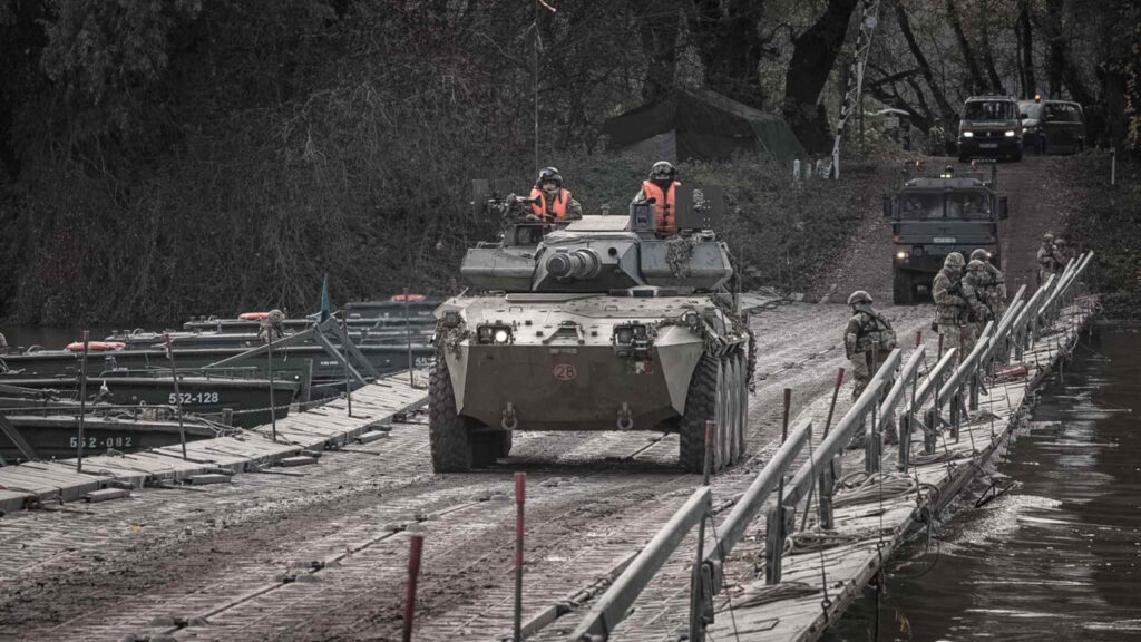 La complessa azione ha visto poi il Plotone supporto alla manovra, la Sezione di artiglieria e due Blindo Centauro riunirsi con l’aliquota aviolanciata, dopo aver effettuato un “river crossing” sul fiume Tibisco, tra Tiszasüly e Tiszaroff, mediante l’impiego del ponte galleggiante tattico ungherese “PMP szalaghíd”.
