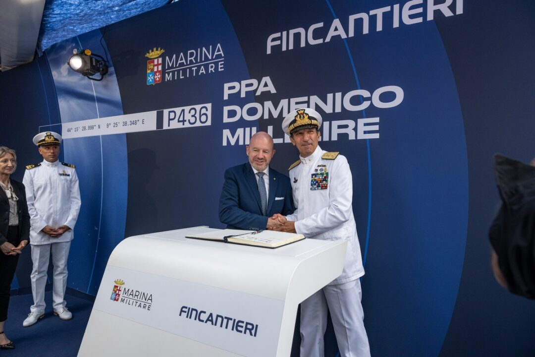 Alla cerimonia hanno partecipato, tra gli altri, il sottocapo di Stato Maggiore della Marina Militare, Ammiraglio di Squadra Giuseppe Berutti Bergotto e Massimo Scialpi, vice Direttore di OCCAR, accolti per Fincantieri da Dario Deste, Direttore Generale Navi Militari.
