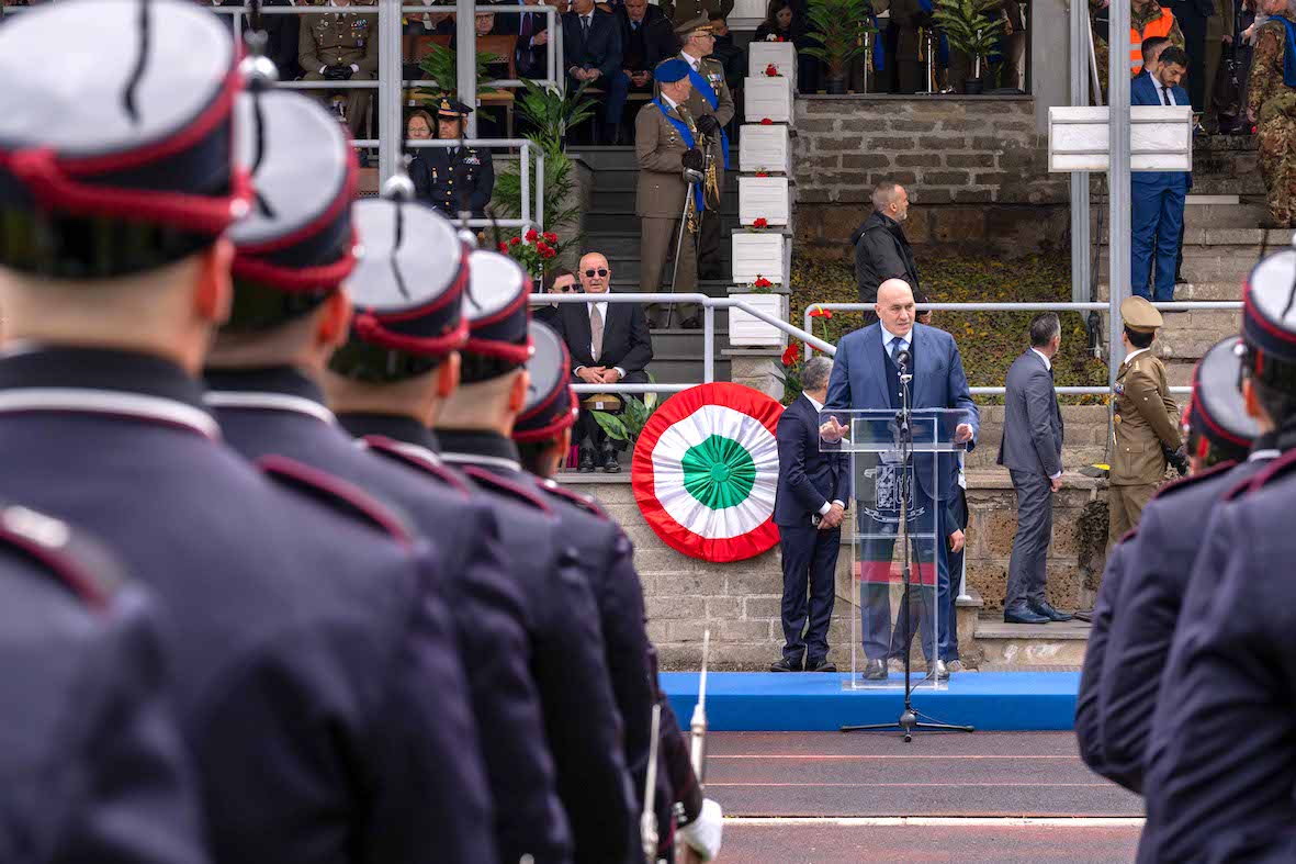Crosetto nel suo intervento ha detto: “Sono qui per voi, per onorare la vostra scelta. Davanti alle vostre famiglie, che provano un orgoglio immenso, ma anche un velo di malinconia: è naturale, quando si vede un figlio diventare grande. Oggi, però, per i genitori c’è un motivo in più per essere orgogliosi: i vostri figli e le vostre figlie hanno giurato di proteggere tutti noi. In un tempo in cui tutto sembra incerto, hanno promesso fedeltà ai valori su cui si basano le Forze Armate, che non cambiano con il tempo, semplici da pronunciare ma difficili da vivere. Valori che voi avete scelto di custodire e onorare. Dovete ora avere la forza di distinguere tra il bene e il male, tra ciò che è giusto e ciò che non lo è. Non sono qui solo per passare in rassegna e guardavi con rispetto, ma per ringraziarvi a nome delle istituzioni e per darvi il benvenuto nella grande famiglia della Difesa. A voi affidiamo il futuro del Paese”.