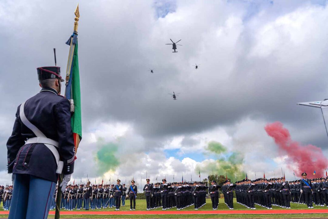 L’importanza del momento è stata sottolineata dal “Lo giuro” gridato all’unisono da parte degli allievi marescialli ed è stata suggellata dal sorvolo di una formazione di elicotteri TH-500 e HH-139 dell’Aeronautica Militare, accompagnato da una salva tricolore di artiglieria.