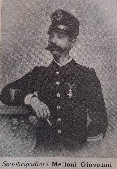 Il Meloni – simpatica figura di sott’ufficiale qui conosciuto dai buoni cittadini per la squisita bontà dell’animo suo – appariva commosso. Il nostro amato Ispettore Cav. Napoleone Paladino, dopo aver consegnato la ben meritata onorificenza al Meloni, tenne un discorso, elevato per forma e concetti, esaltando l’atto di valore nel quale il Meloni col pericolo della propria vita, tanto si era distinto. Concluse con  un caloroso saluto al benemerito graduato, ed incitando i suoi dipendenti ad imitarlo nella via del dovere, dove si conseguono sempre le più ambite soddisfazioni.