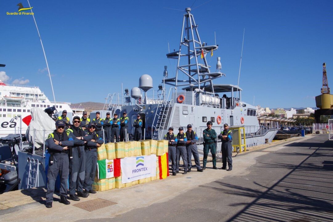 Il perché di tutta quella concitazione è stato presto rivelato dalla presenza a bordo di 30 colli contenenti la citata sostanza stupefacente mentre, sotto la direzione del rappresentante delle Autorità iberiche presente sul P.V. 10 “Petrucci”, si è contestualmente proceduto all’arresto dei quattro membri dell’equipaggio risultati di nazionalità spagnola e marocchina.