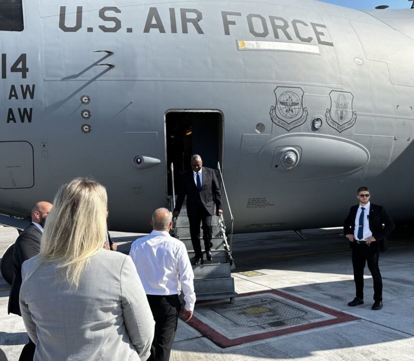 Austin è sbarcato da un aereo cargo americano. Possibile che abbia portato materiale bellico a sostegno della causa israeliana.