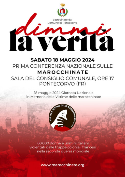 PONTECORVO (FROSINONE) . “Dimmi la verità” è lo slogan della prima Conferenza nazionale sulle marocchinate che si svolgerà sabato 18 maggio con inizio alle ore 17, nella sala del Consiglio comunale di Pontecorvo (Frosinone).