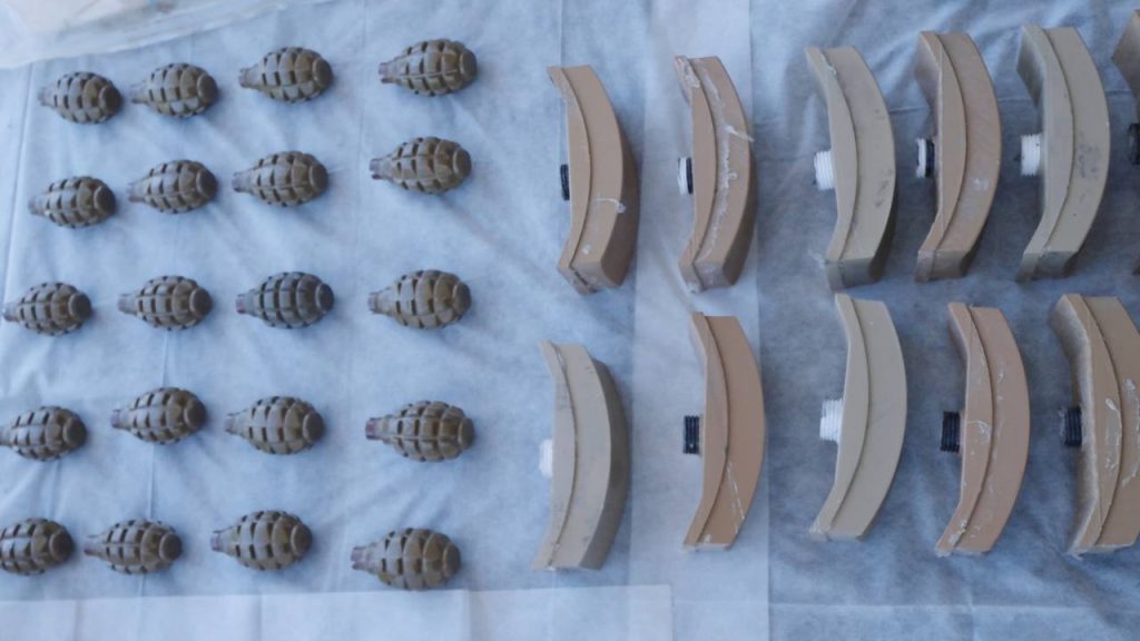 Questo il materiale sequestrato:29 cariche esplosive, 4 droni (di cui 2 esplosivi), 15 razzi anticarro e RPG (e 3 lanciarazzi a razzo), 20 granate a man, 53 pistole, 7 fucili d’assalto di vari tipi, 9 mitragliatrici e 750 proiettili per pistola