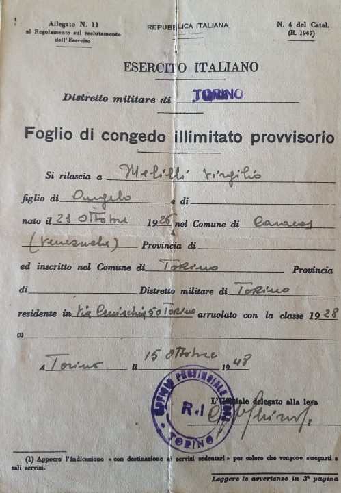 I Melilli erano giunti in Italia direttamente dal Venezuela qualche tempo prima, e ciò a causa del cambiamento dell’atteggiamento Governativo nei nostri riguardi [2], stabilendosi dapprima a Licata e, infine a Torino.