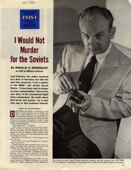 Khokhlov infatti era arrivato in Germania con il compito di assassinare il leader di un’organizzazione anticomunista ma, una volta in Occidente, aveva disertato, rivelando l’obiettivo e consegnandosi agli agenti statunitensi.