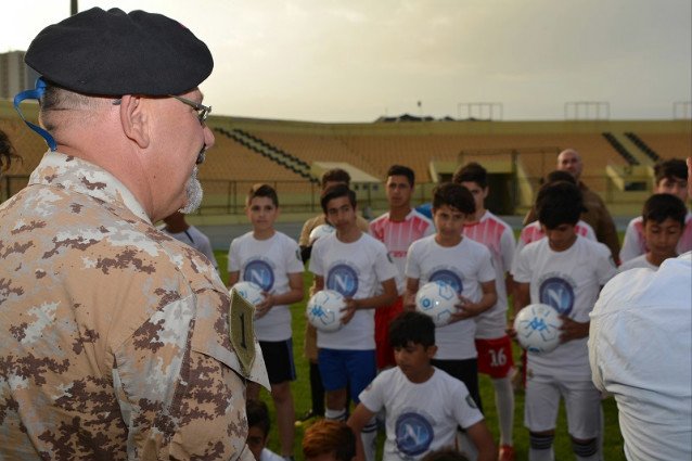Nei giorni scorsi, infatti, il generale Ceravolo ha consegnato, nel capoluogo del Kurdistan iracheno, alla FC Erbil equipaggiamento sportivo donato dalla Società Napoli FC. 25 palloni e magliette con la quale la Società Napoli ha inteso manifestare il proprio sostegno al lavoro quotidianamente svolto dalla dirigenza del club calcistico locale per assicurare a più di 140 giovani l’esercizio della pratica sportiva.