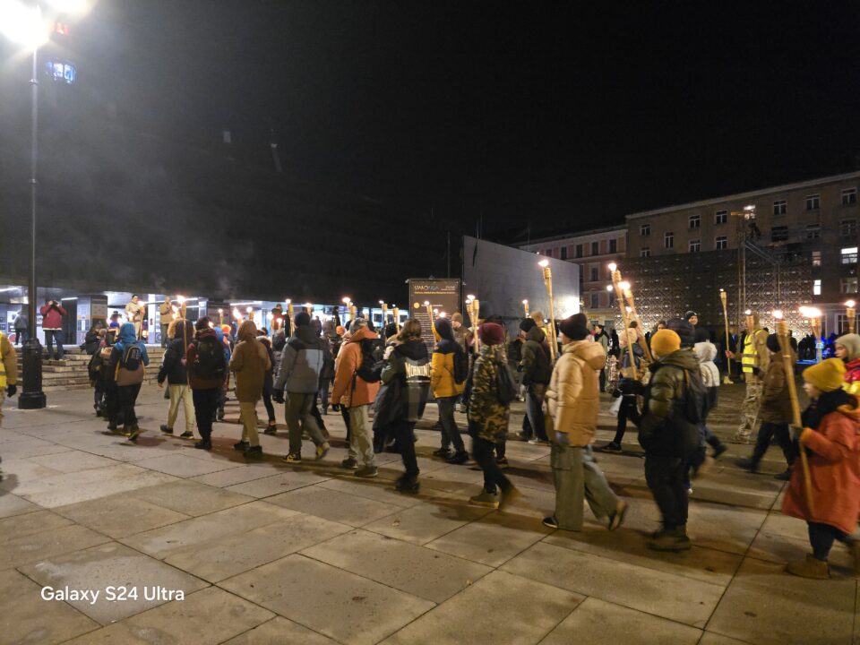 Da qui giovani e giovanissimi supportati dai militari della Jaunsardze con le fiaccole sono partiti in corteo fino al Monumento della Libertà, accompagnati anche da numerosi adulti.
