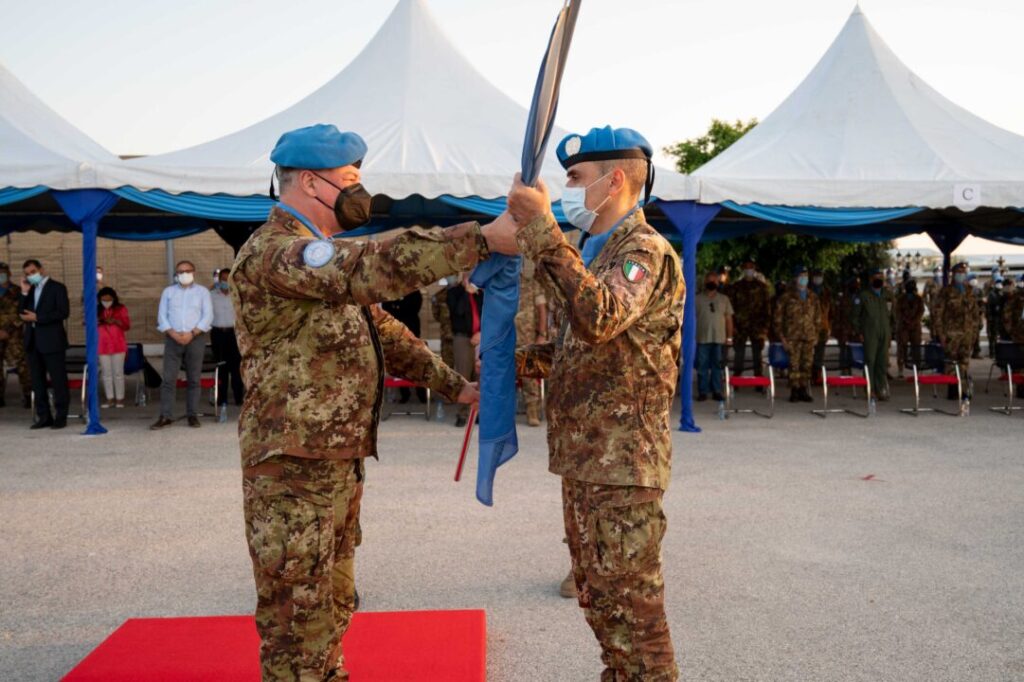 Alla presenza dell’ambasciatrice d’Italia in Libano, Nicoletta Bombardiere e delle principali autorità civili e militari locali, con una breve cerimonia presieduta dal capo missione e comandante di UNIFIL Generale di Divisione Stefano Del Col, il Generale di Brigata Davide Scalabrin ha ceduto la bandiera delle Nazioni Unite al parigrado Stefano Lagorio.