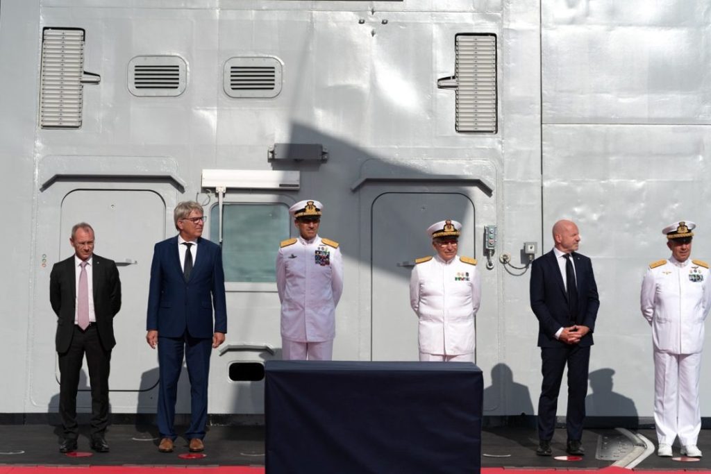 Alla cerimonia hanno partecipato il direttore generale della Divisione Navi Militari di Fincantieri, Dario Deste, l’amministratore delegato di Orizzonte Sistemi Navali, Giovanni Sorrentino, il direttore di OCCAR, generale Joachim Sucker, l’ammiraglio di divisione Flavio Biaggi, comandante del Comando interregionale marittimo nord, il direttore di NAVARM, Ammiraglio ispettore capo Giuseppe Abbamonte e il sottocapo di Stato Maggiore della Marina Militare, ammiraglio di squadra Giuseppe Berutti Bergotto.