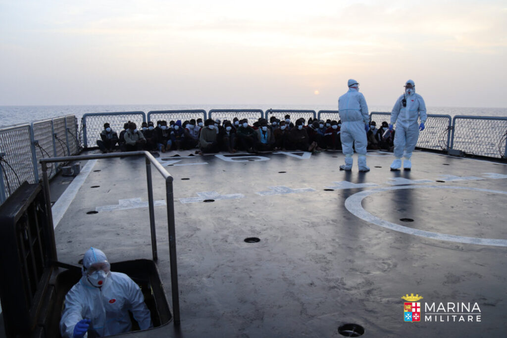Date le caratteristiche del mezzo e la completa assenza di dispositivi di sicurezza individuali ai naufraghi sono stati distribuiti salvagenti e dispositivi per la protezione individuale da COVID-19, e successivamente sono stati tratti in salvo a bordo della nave della Marina militare.