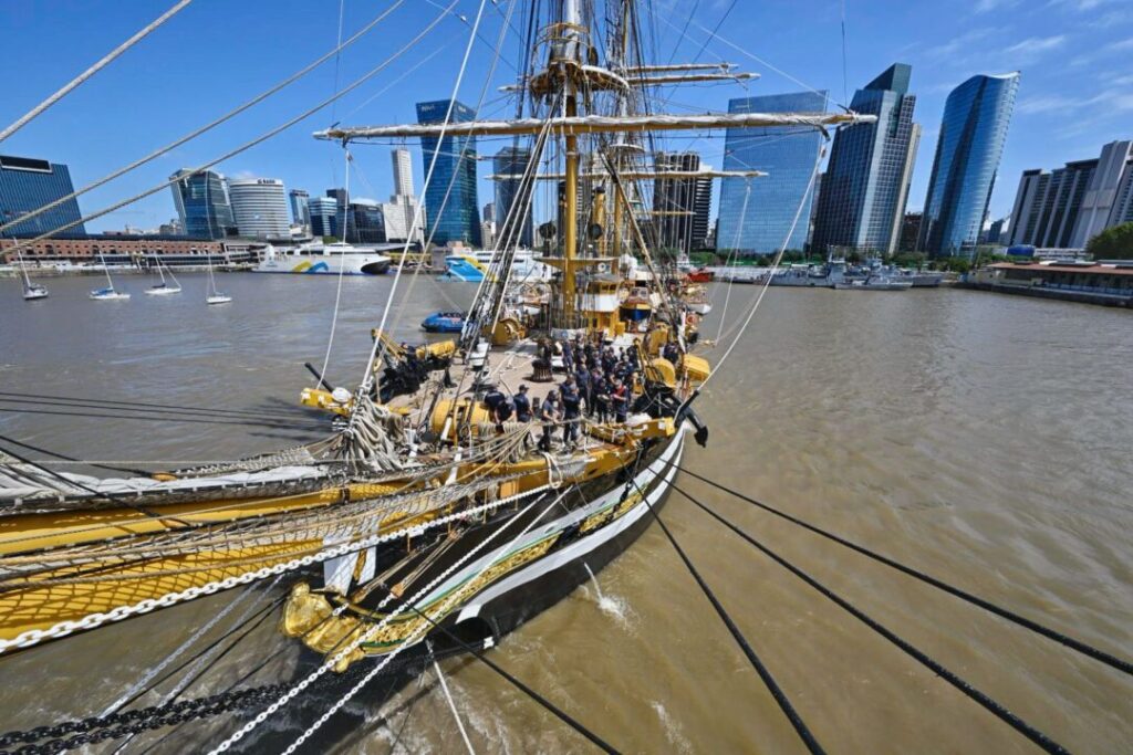 Dopo le recenti visite nei porti di Montevideo (Uruguay) e Buenos Aires (Argentina), dove ha avuto una grande affluenza di visitatori, la nave ha ripreso il mare lungo le orme di Magellano e, per la prima volta nei suoi 90, ripercorrerà le antiche rotte a Sud del Continente americano, transitando “controvento” dall’Atlantico al Pacifico.
