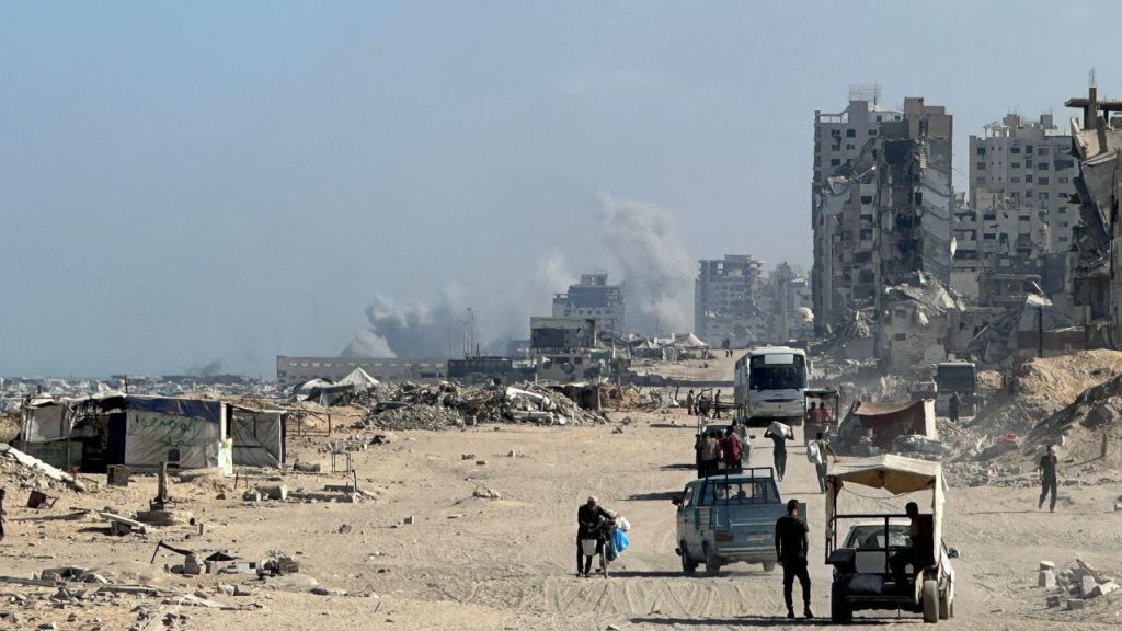 Un’immagine di Gaza colpita dai bombardamenti per la guerra contro Hamas