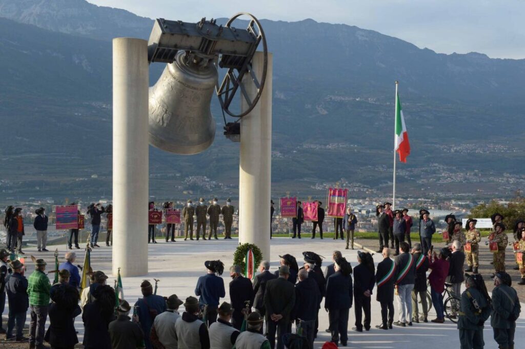 Rovereto (Trento). Prima le melodie della “Tromba dell’Armistizio” suonata dal Maestro Ivano Ascari e poi i 100 rintocchi della Campana dei Caduti “Maria Dolens” hanno sancito sul Colle di Miravalle a Rovereto (Trento) la conclusione della “Staffetta Cremisi della Pace – Centenario del Milite Ignoto” per quanto riguarda il Trentino Alto Adige e i suoi riflessi internazionali con il coinvolgimento della Croce Nera austriaca.