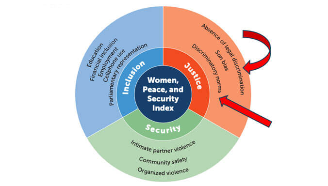By referencing the Georgetown WPS Index to show public opinion in the region concerning women’s workforce inclusion, she showed that a significant portion of the population do not support women from their family seeking outside employment.