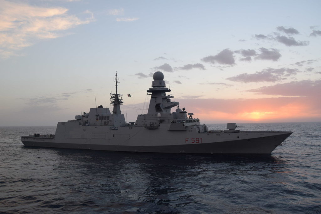 A bordo della fregata della Marina Militare italiana il contrammiraglio Fabio Gregori che ha sostituito al comando dell’operazione l’ammiraglio Rafael Fernández-Pintado Muñoz-Rojas della marina spagnola.