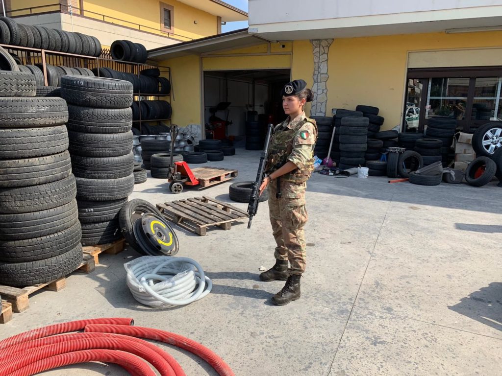 In particolare, a Castel Volturno è stata sequestrata un’attività commerciale operante nel settore degli pneumatici per deposito illecito di rifiuti speciali (pneumatici, componenti di autovetture e imballaggi).