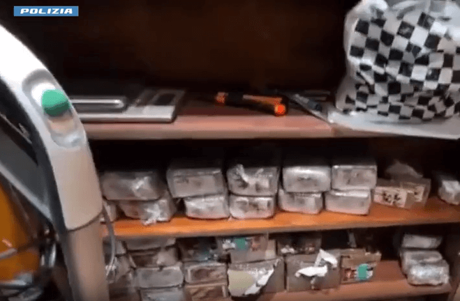 Oltre alle armi, all’interno dell’abitazione sono stati poi trovati 138 chili di hashish, 1,4 chili di eroina, 700 grammi di marijuana, 50 grammi di cocaina e 700 grammi di sostanza da taglio, una macchina per il sottovuoto, quattro bilancini di precisione, materiale per il confezionamento della sostanza stupefacente e 2.200 euro.